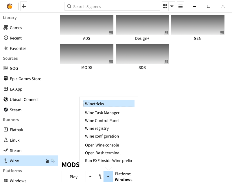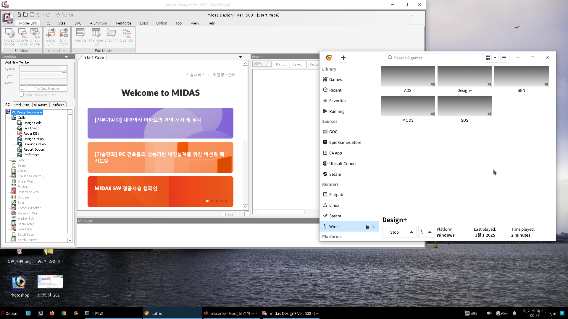 이제 GEN, SDS, ADS, Design+ 등 사용하시는 프로그램의 실행아이콘을 만듭니다. Lutris를 쓰실 정도면 알아서 잘 만드실 거라고 생각됩니다.