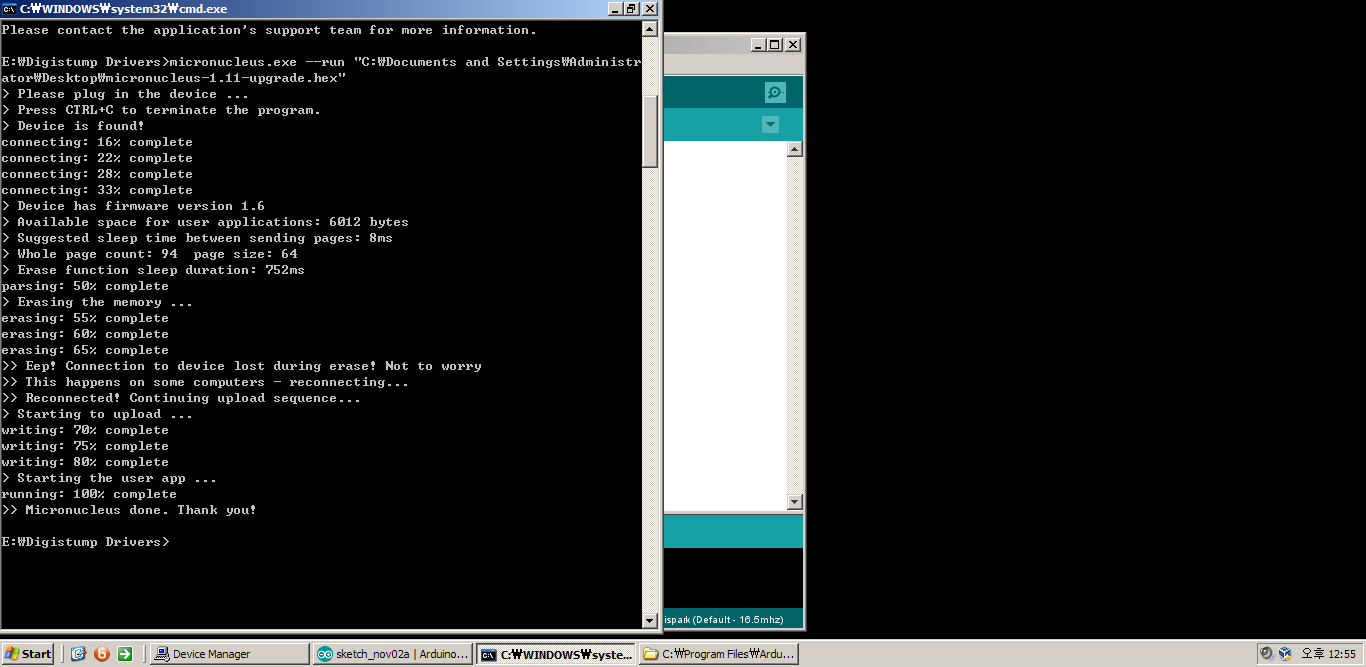 어쨌건 윈도우에서 드라이버가 설치되었다면 보드 인식이 되었을 겁니다. 그리고 드라이버 설치 폴더를 뒤져보면 Micronucleus.exe라는 프로그램이 있을 겁니다. 이것을 이용해서 부트로더를 업그레이드 하게 됩니다. 단, 명령어를 쓰기 때문에 기본 cd명령어 정도는 알고 계셔야 합니다.