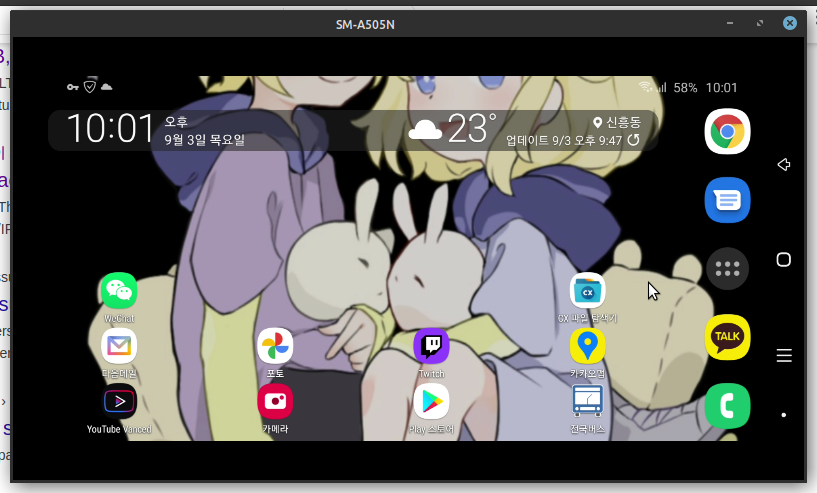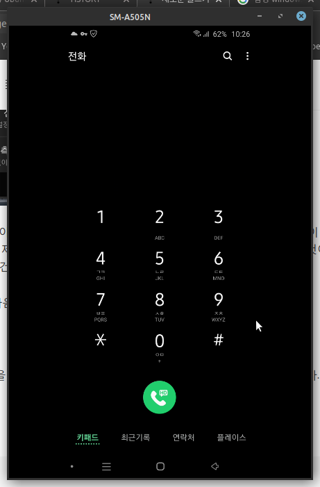 요렇게 스마트폰화면이 미러링이 됩니다. 그리고 마우스로 클릭하면 터치도 됩니다!!! 두둥!!!