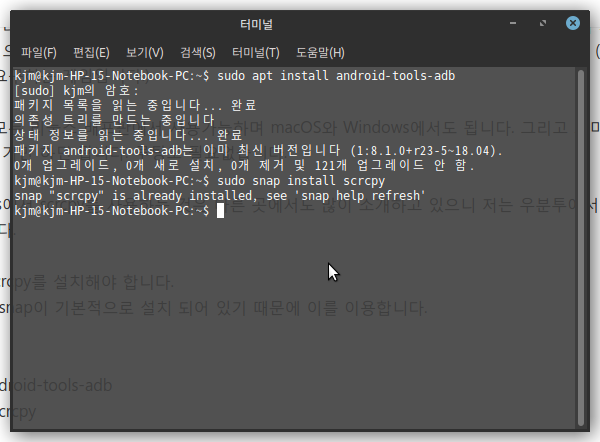 우선 우분투에서 scrcpy를 설치해야 합니다.