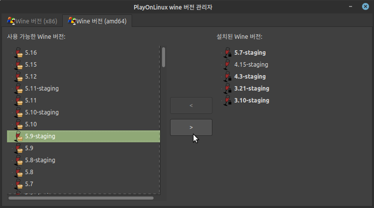 여기서 영어의 압박이 올 수 있는데 PlayonLinux가 한글화가 되고는 있지만 아직 기여가 부족합니다.