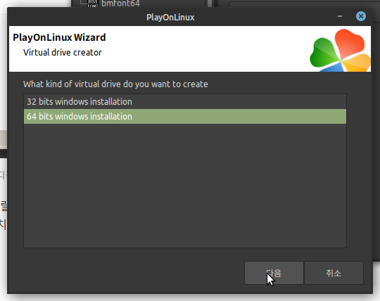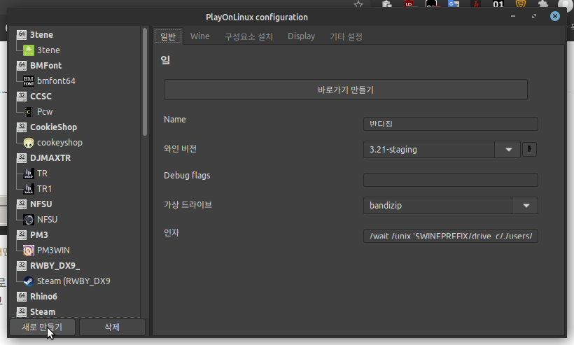 그냥 이런식으로 넣어주시면 됩니다. 그 다음 다시 PlayonLinux의 구성창으로 돌아옵니다.