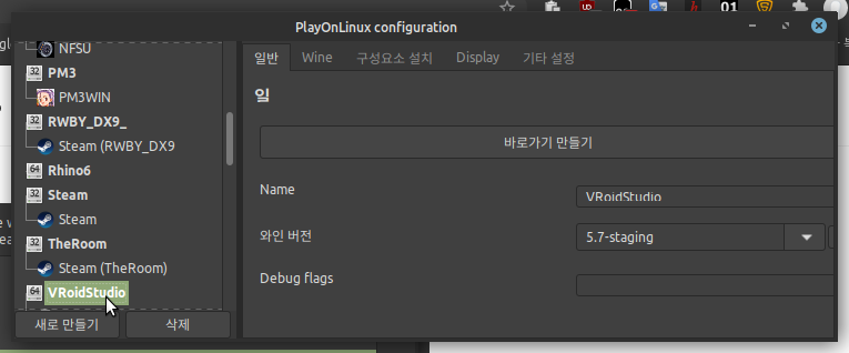 그리고 저는 Wine을 돌릴때 따로따로 관리하는 것을 좋아하기 때문에 VRoid Studio도 PlayonLinux로 관리합니다.