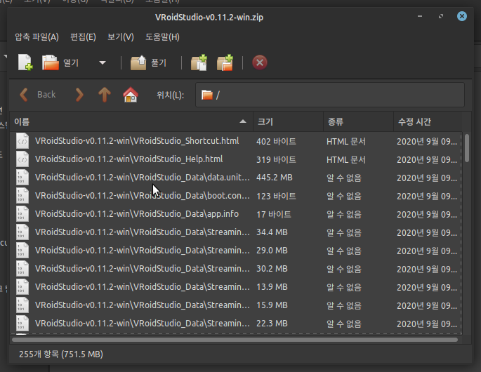 그리고 압축파일을 열고 x64폴더 안에 있는 dll들을 아까 VRoidStudio를 복사했던 폴더에 다 풀어놓습니다.