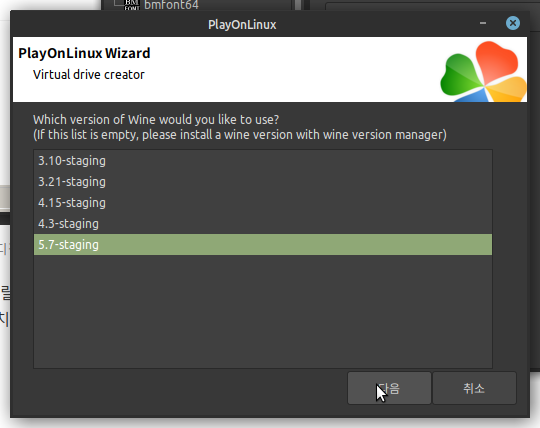 그리고 Wine 5.7이상의 버전을 설치해야합니다.