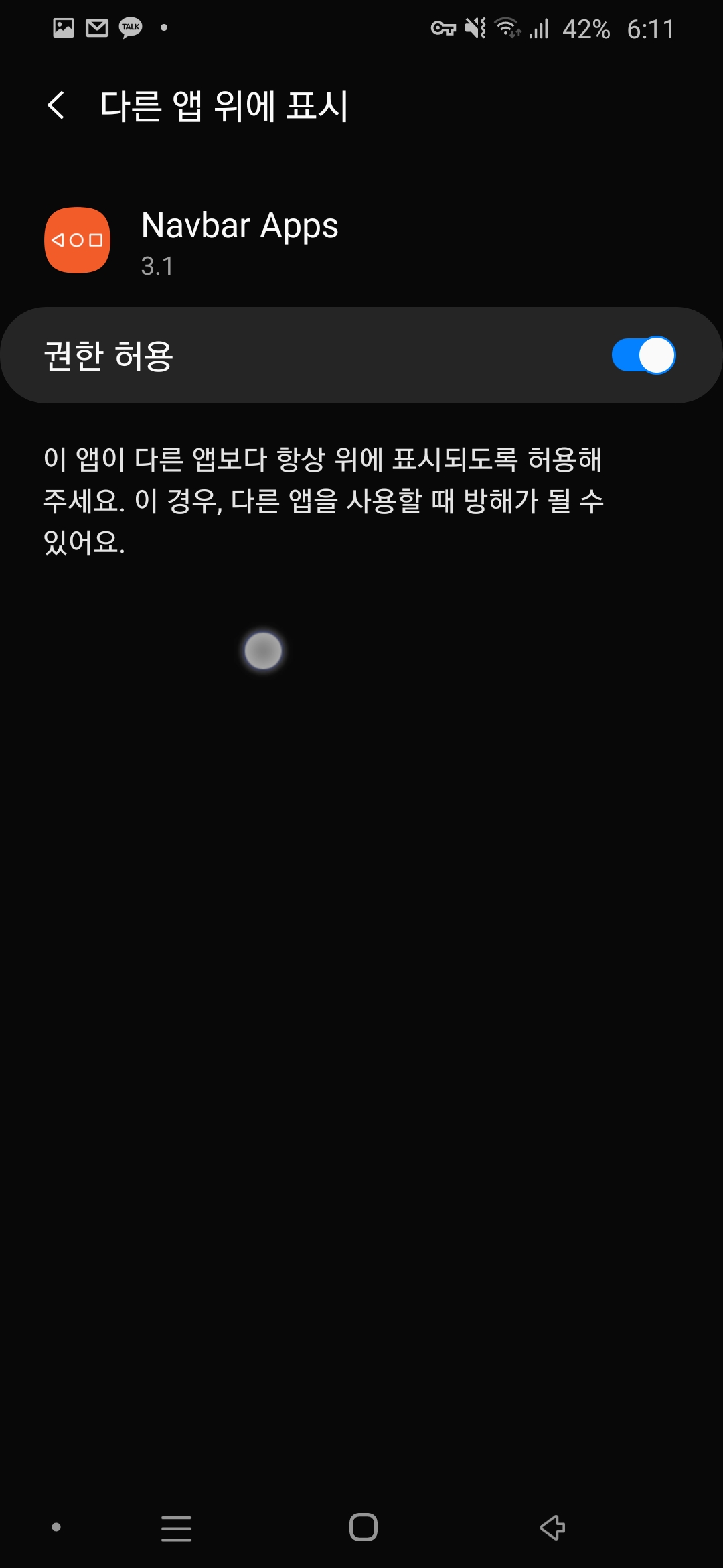 접근성 서비스에서 내비바를 쓰기로 허가하자.