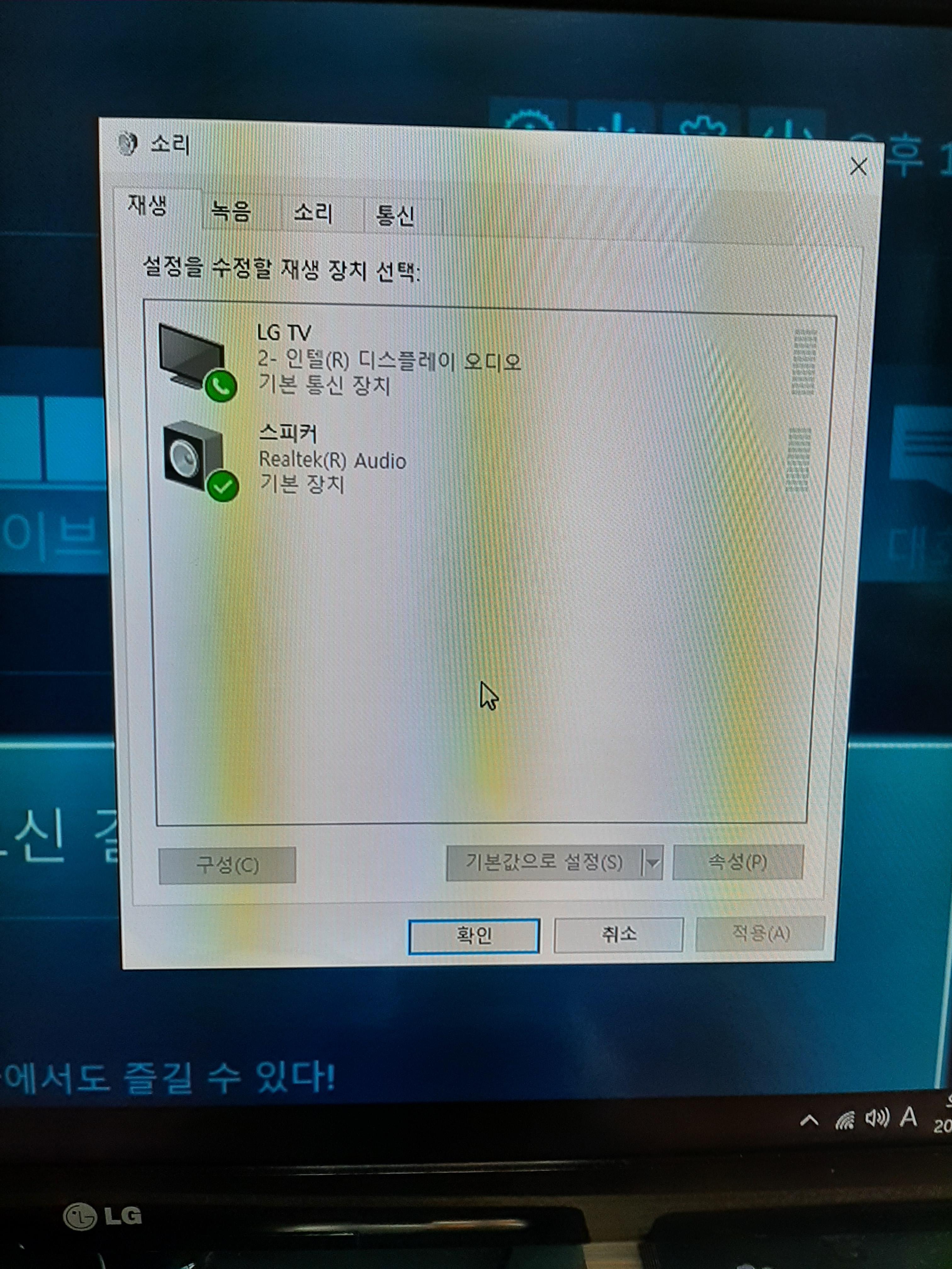 기본 사운드장치를 아날로그 사운드로 잡고 HDMI를 기본통신장치로 설정합니다.
