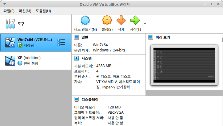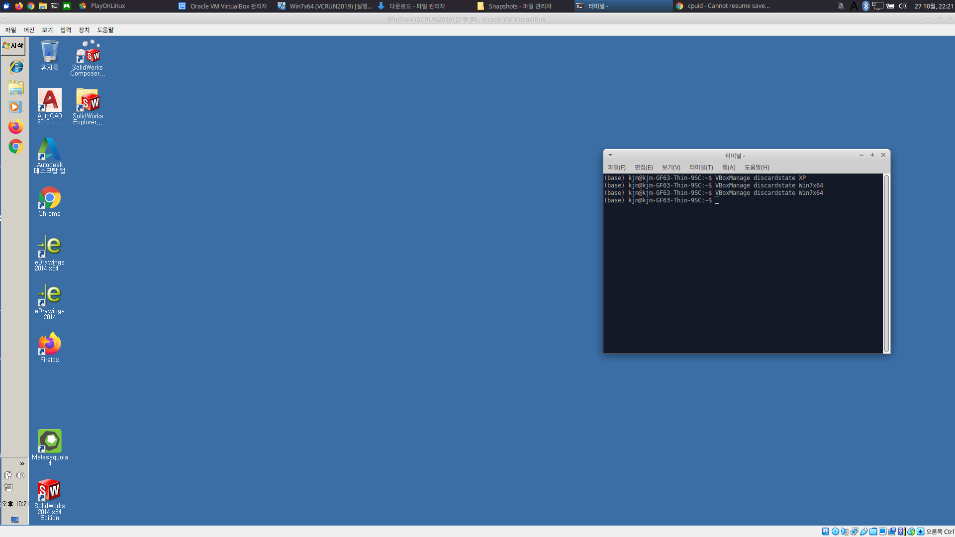 그래서 저도 제가 자주 쓰는 프로그램(대부분 CAD류의 설계프로그램)을 Virtualbox위에서 구동시켜서 사용합니다.