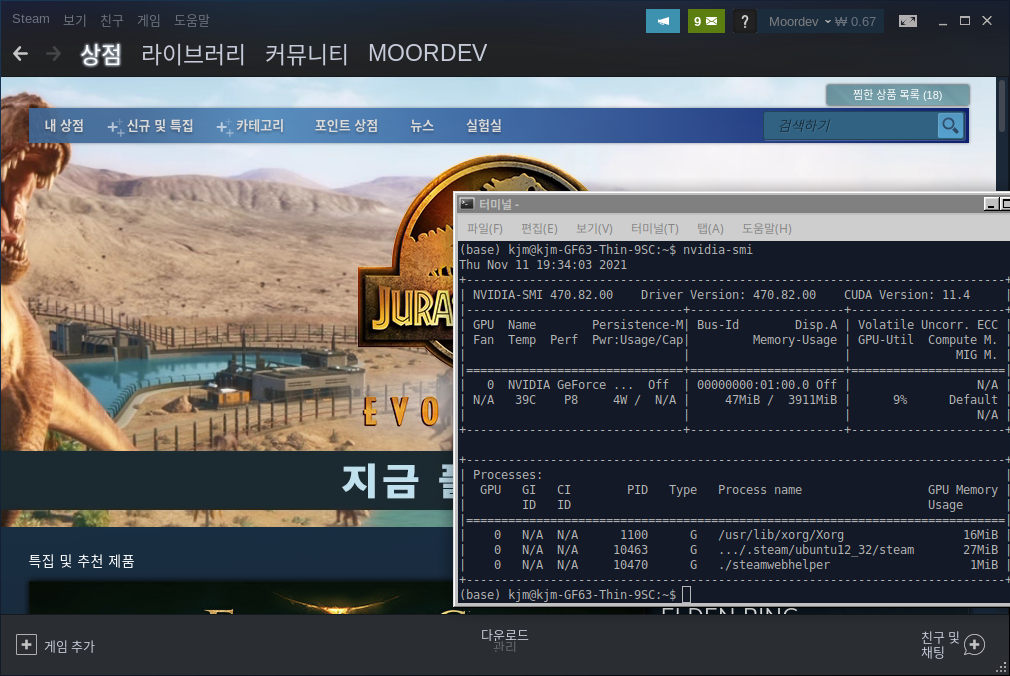 스팀을 Nvidia 카드 없이 그냥 실행하면