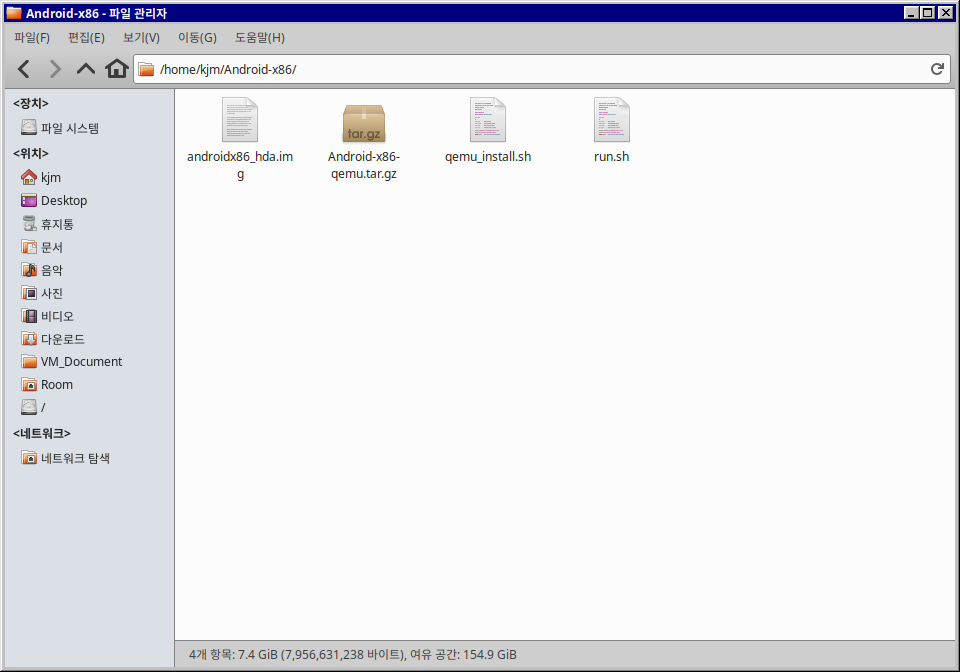 우선 qemu_install.sh파일을 실행(터미널에서 실행하세요. 관리자 권한이 필요합니다.)해서 qemu와 kvm을 설치하고 그 다음에 run.sh를 실행하면 그냥 세팅이 완료된 안드로이드가 짠하고 나옵니다.