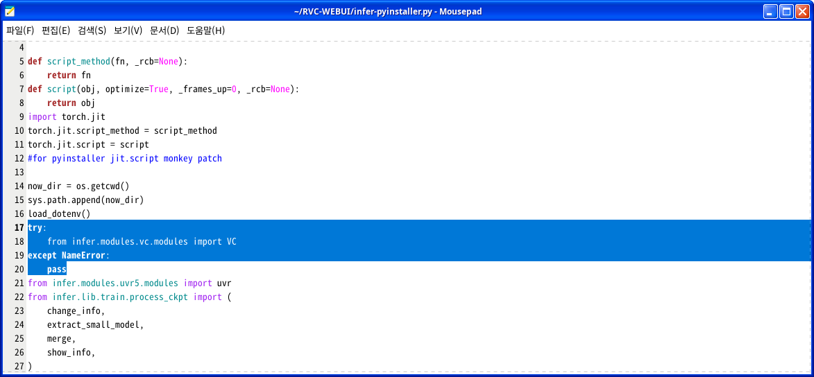 그냥 Pyinstaller로 만드는 메인 스크립트중 fairseq을 로딩하는 모듈을 임포트할때 NameError를 except처리해 버리는 겁니다.