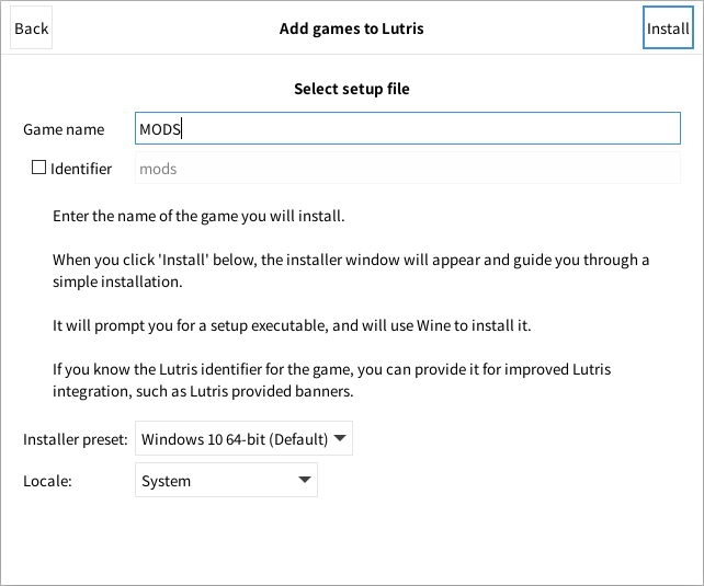 Game name은 알아보기 편한 것으로 해주시고 Install 버튼을 누르면 (Locale은 바꾸지 말아주세요.)
