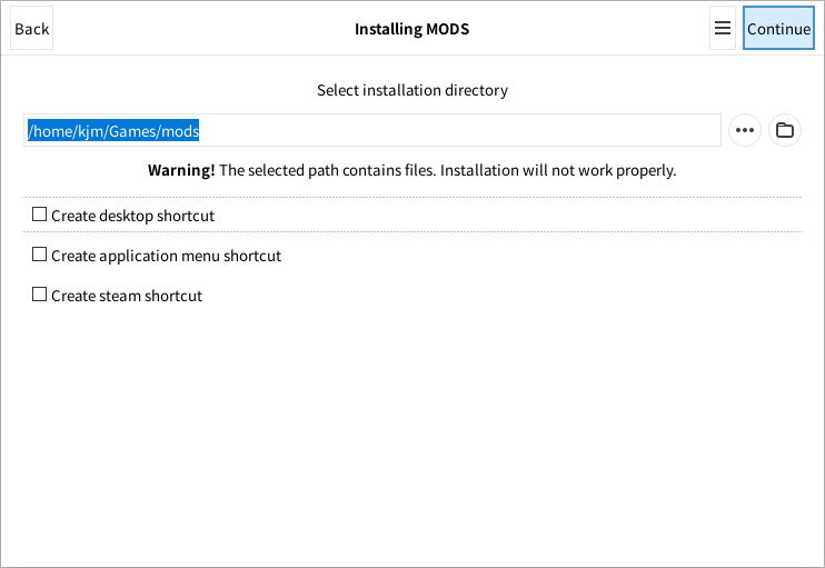 이제 Setup.exe를 선택이 가능해지는데 MODS의 setup.exe를 지정합니다.