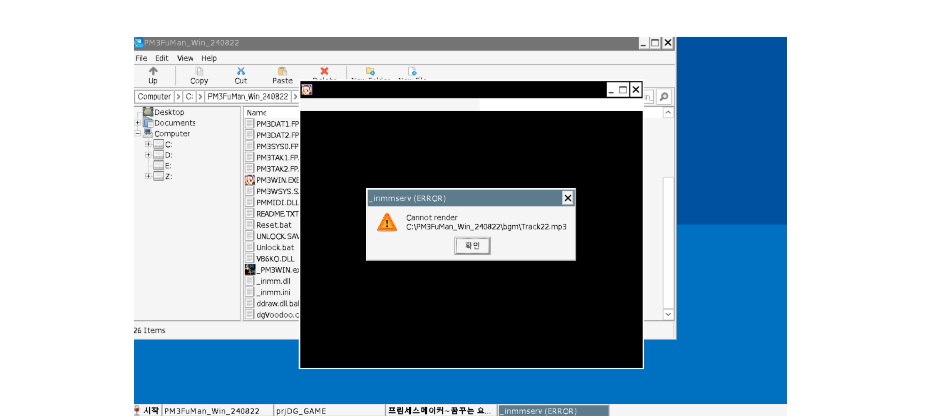 배경음악이 안나오는건 _inmmserv.exe와 DirectShow가 문제가 생긴 탓으로 보입니다.