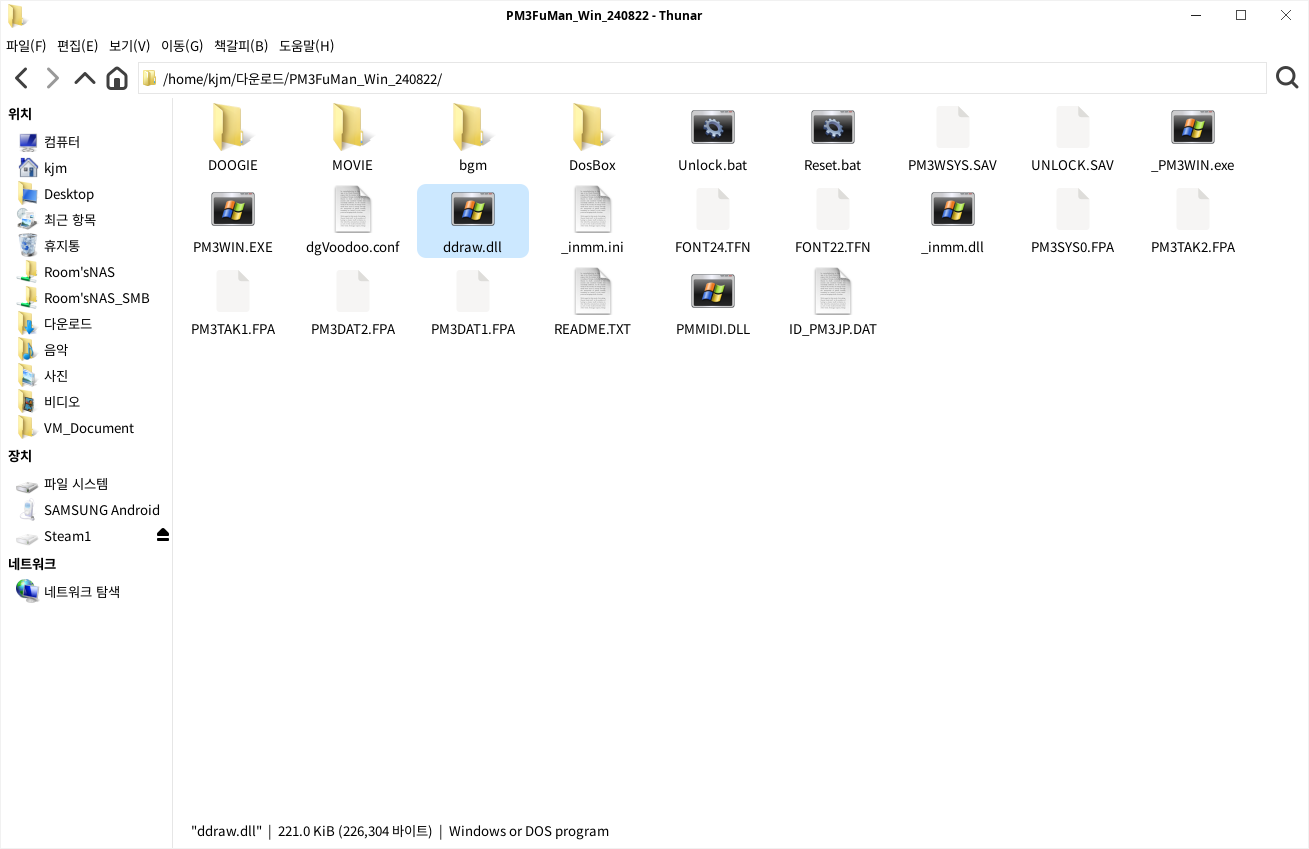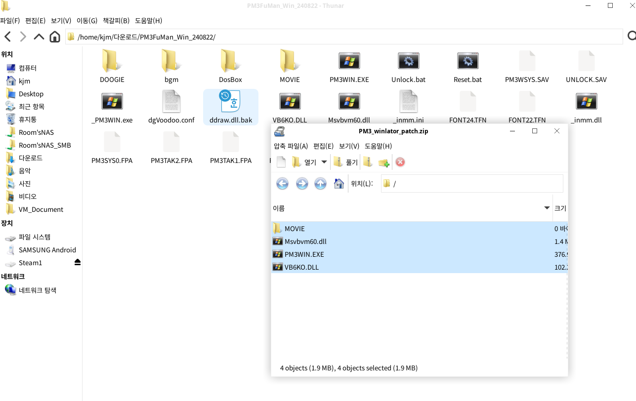 알아서 잘 해당 블로그에서 잘 다운로드 받아보면 _inmm을 통해 CD-DA패치가 되어 있으며 dgvoodoo를 통해 DDraw 호환패치가 되어져 있습니다. 이중 dgvoodoo를 무력화 할 것입니다. 이유는 VirGL에서 문제가 있거든요.