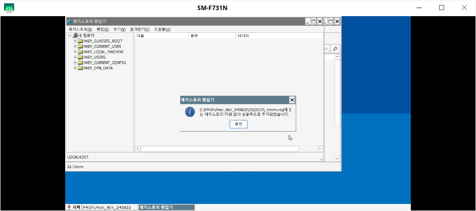 이제 바로 실행!은 아니고 레지스트리를 입력해야 합니다.