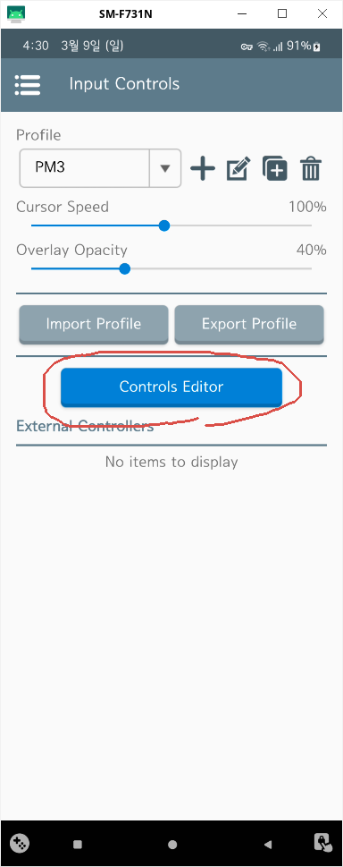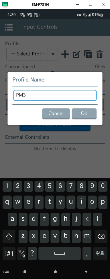 여기서 Input Controls에 Profile을 아까 우리가 만든 PM3 프로파일로 바꾸고