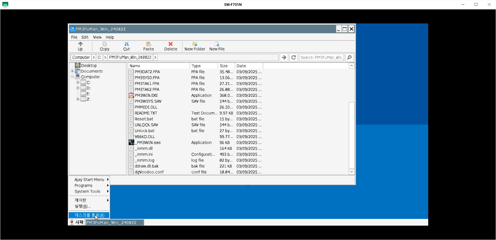 _PM3WIN.exe 파일을 여기서 복사합니다. 그리고 Desktop 에다가 바로가기를 만듭니다.