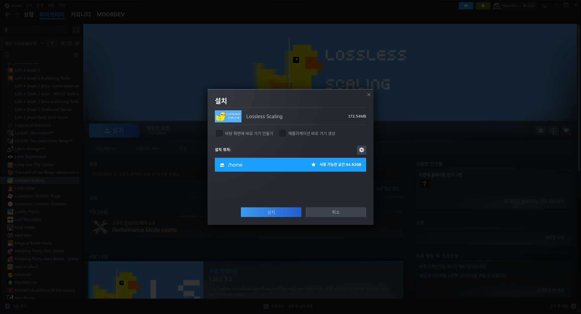이제 제일 핵심인 Lossless Scaling을 설치합니다.