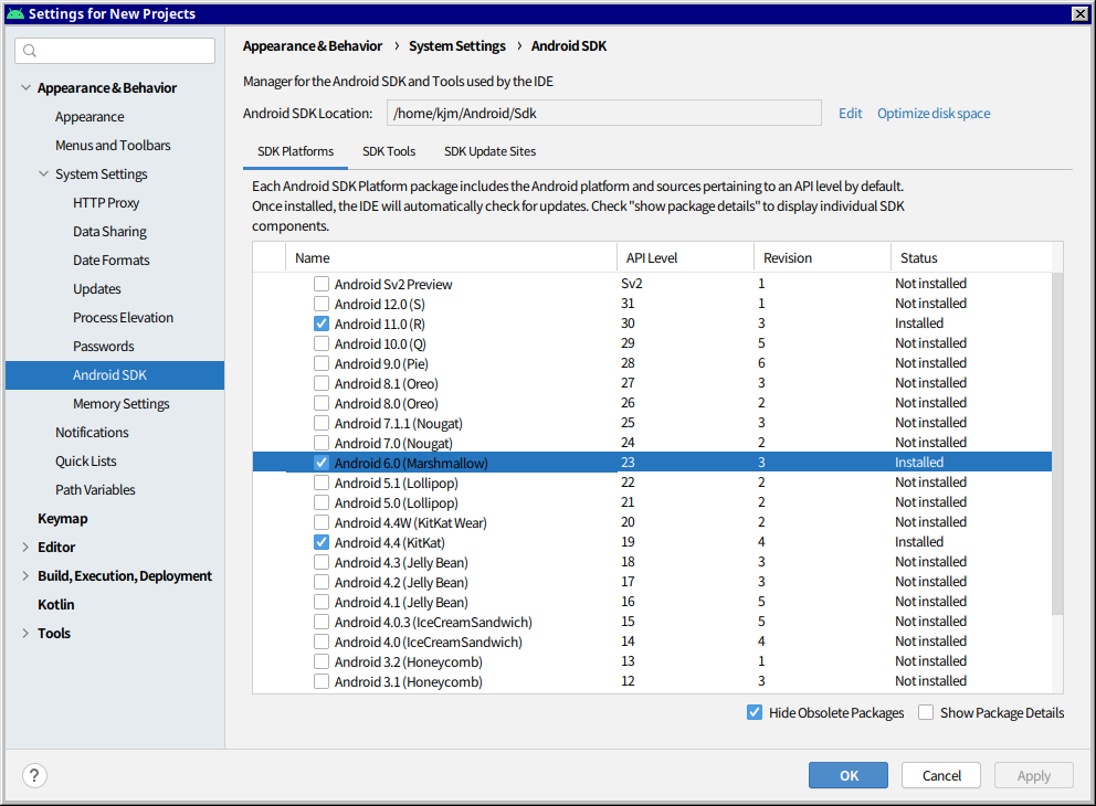 우선 Android Studio를 설치하고 SDK Manager를 실행한다.