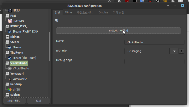 그리고 저는 Wine을 돌릴때 따로따로 관리하는 것을 좋아하기 때문에 VRoid Studio도 PlayonLinux로 관리합니다.
