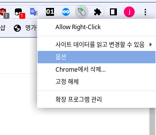 크롬 오른쪽 위에서 해당 아이콘을 클릭 한 후에 옵션을 눌러주세요.
